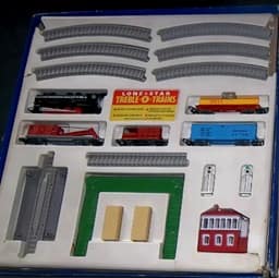 The locomotives reused were the Small Tank Loco, a US Baldwin steam locomotive and an American Transcontinental Diesel. The latter casting was also used for a B.R Diesel Engine in this range, with a BR logo and number.