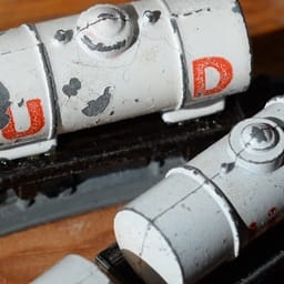 Depending on the wagon, it was mounted either a fixed four-wheel chassis or two bogie wheelbase. Chassis, bogies and flanged wheels were made from a diecast steel alloy. Wheel sets were held in place on the chassis or bogies by crimped lugs.